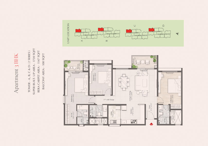 | 3 BHK | 1720 - 1899 SFT | 1.72 - 1.91 Cr |