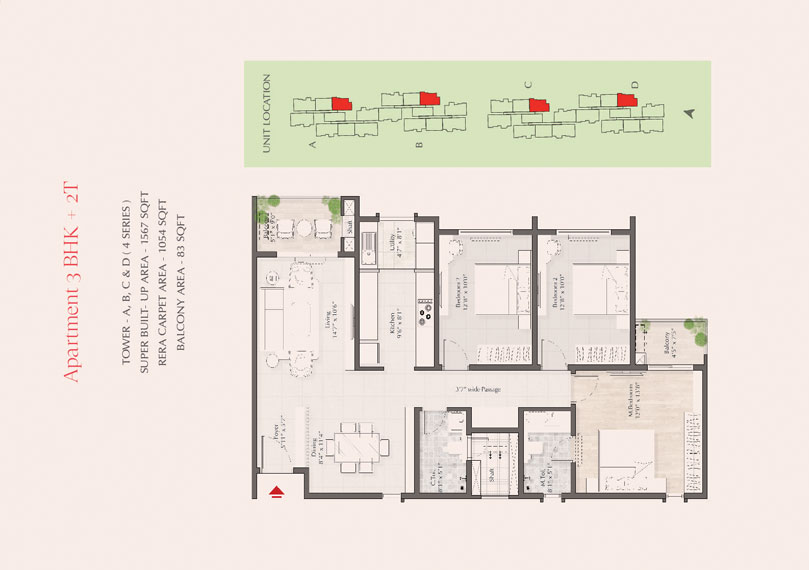 | 3 BHK + 2T | 1567 SFT | 1.57 Cr |