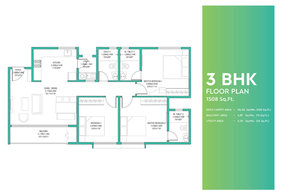 | 3 BHK Premium (3B+2T) | 1700 Sqft | 1.58 Cr |