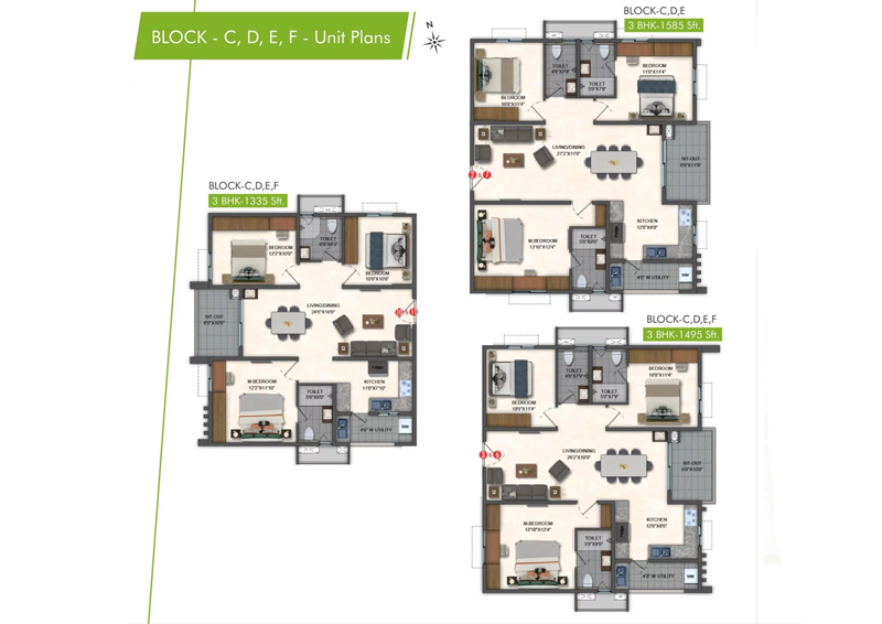 | 2 BHK | 1050 SFT | 1.11 Cr |