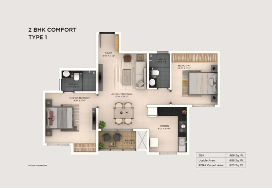 | 2 BHK Comfort | 986 - 1030 SFT | 89.9 lakhs |